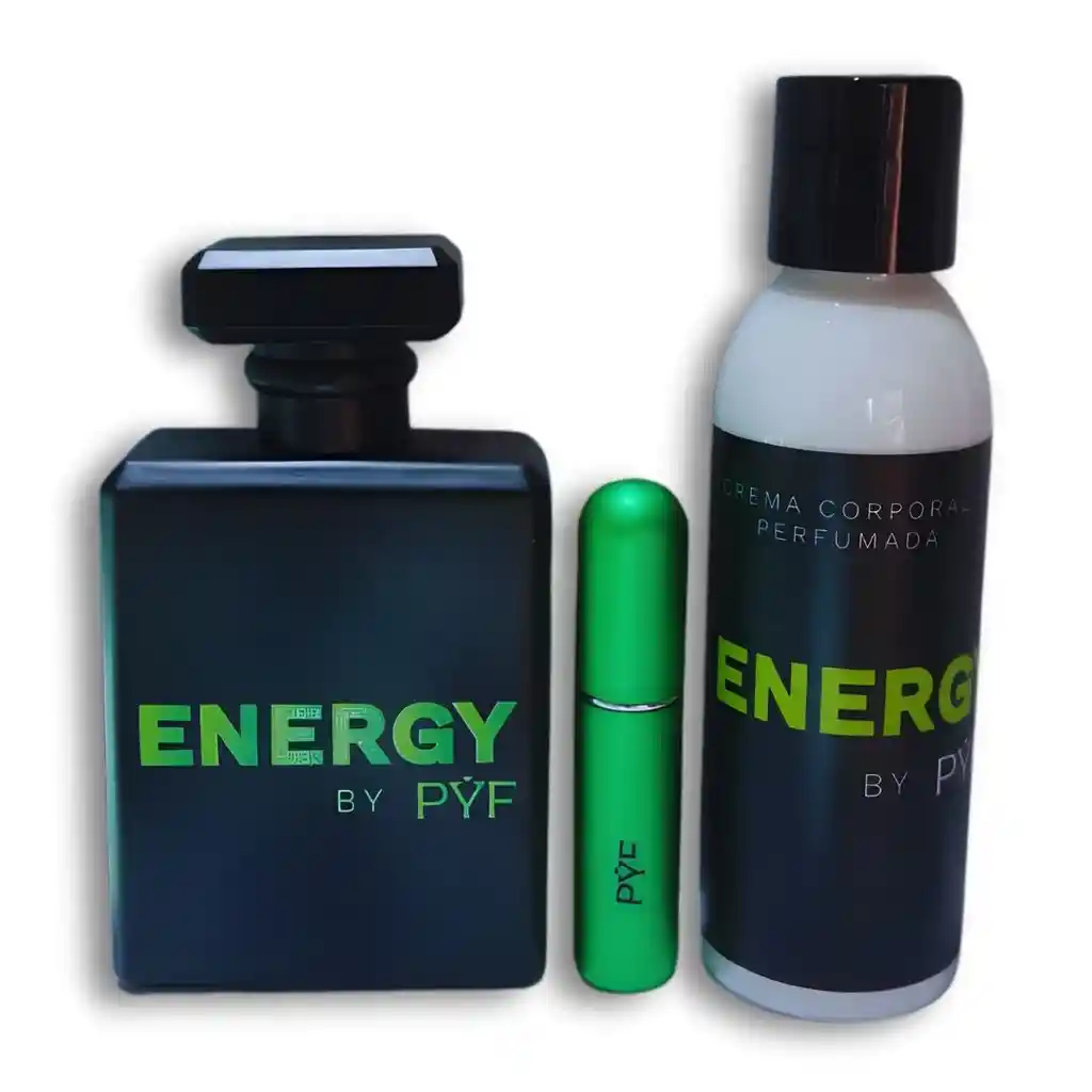 RECIBE NUESTRA FRAGANCIA PROPIA UNISEX ENERGY ENVASE DE 100 ML D E LUJO GRAFADO, EXCELENTE ATOMIZADOR PARA MAYOR PERDURABILIDAD Y ESTELA OLFATIVA CREMA CORPORAL PERFUMADA DE 120 ML PERFUMERO RECARGABLE CAJA PYF+ BOLSA D ELUJO Y TAJETA DE NAVIDAD