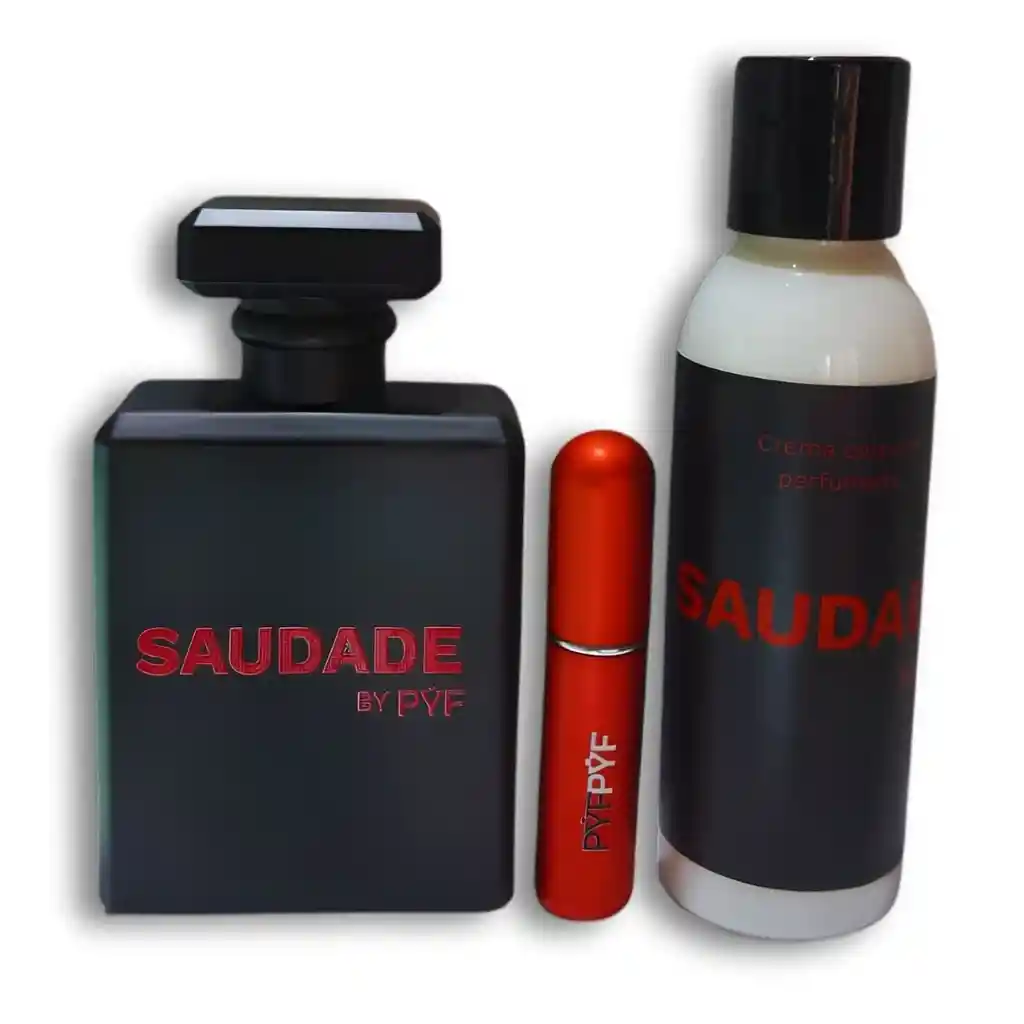 DISFRUTA DE NUESTRA FRAGANCIA PROPIA UNISEX SAUDADE EN ESTA NAVIDAD 1 FRAGANCIA DE 100 ML ENVASE DE LUJO GRAFADO, EXCELENTE ATOMIZADOR MEJOR ESTELA OLFATIVA Y MAYOR PERDURABILIDAD 1 CREMA CORPORAL PERFUMADA DE 120 ML SAUDADE 1 PERFUMERO RECARGABLE CAJA PYF+BOLSA D ELUJO+TARJETA DE NAVIDAD