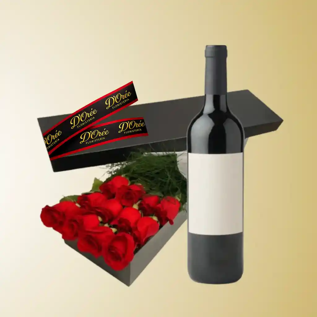 Demuestra tu amor con esta romántica caja. Esta caja contiene: -12 Rosas -Follaje -Vino Tinto Gato Negro. -Caja (el diseño de la caja varia según la disponibilidad) La imagen es referencial. El color de las rosas puede variar según la disponibilidad.