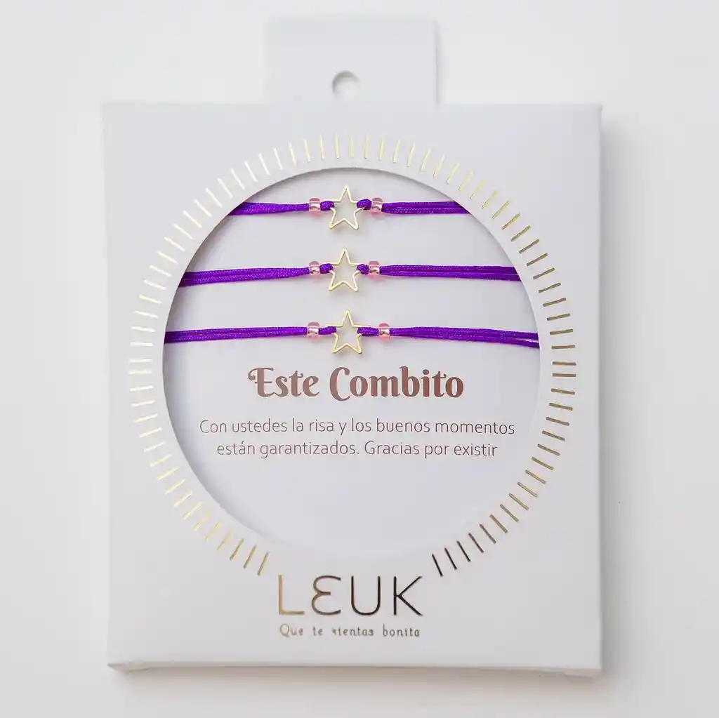 Set de 3 manillas de hilo ajustable con dijes en latón con baño de oro, presentadas en caja intencionada “Este Combito”. Un detalle especial para compartir entre amigas y celebrar la complicidad. Perfecto como regalo para mejor amiga, hermanas o tu grupo favorito. Un símbolo de unión, apoyo y conexión que pueden llevar todos los días. ✔ Set de 3 manillas ajustables ✔ Dijes en latón con baño de oro ✔ Ideal para regalar y compartir ✔ Símbolo de amistad y complicidad ✔ Accesorio con intención y significado Incluye caja con nombre intencionado. Talla única ajustable.