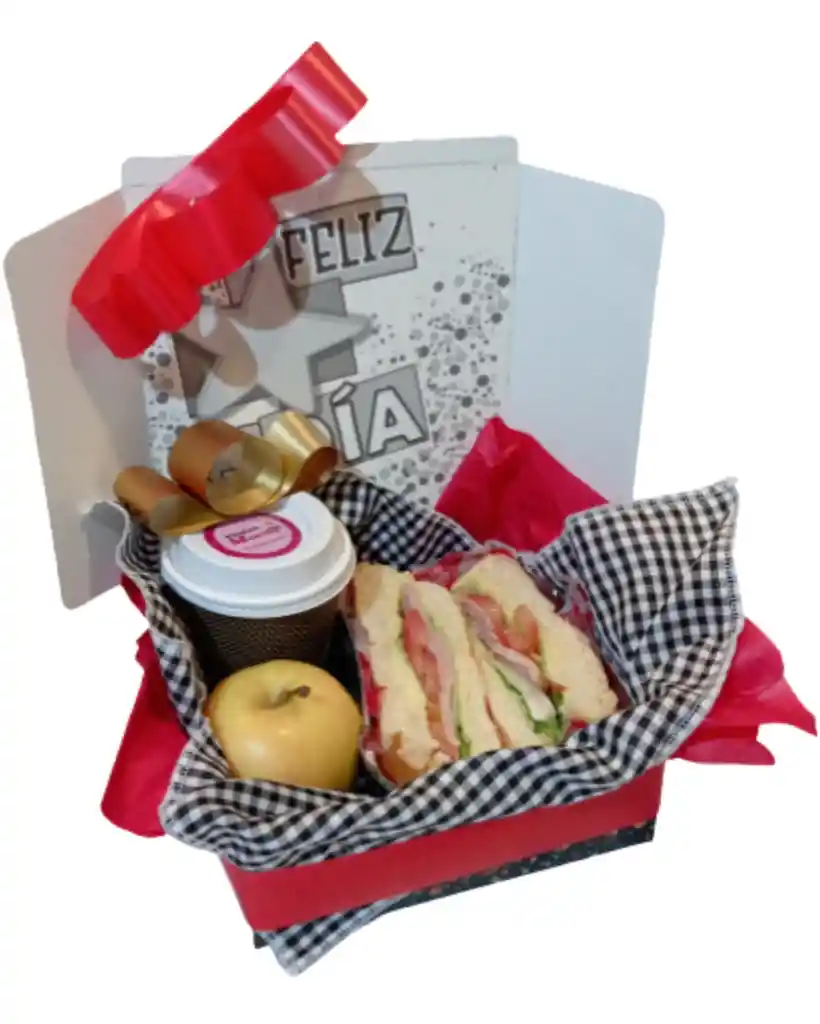 desayuno ideal para soprender en un dia cualquiera y convertirlo en uno espcial , cafe latte, fruta , y rico sandwinch ranch , incluye tu mensaje personal y globo sencillo