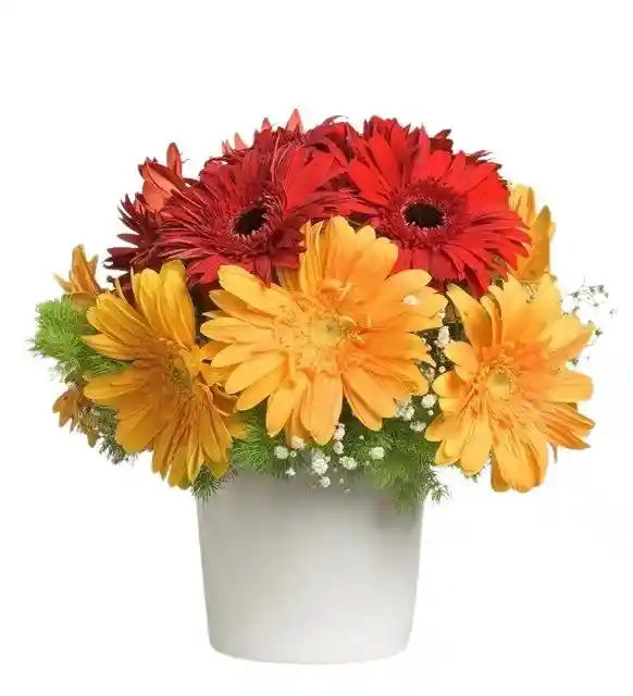 caja con 8 gerberas amarillas y 5 gerberas naranjas con gypso .La flor puede ser sustituida dependiendo la disponibilidad de color y del producto “Mensaje Personalizado” máximo de 30 caracteres (Dejar el mensaje en el chat, los comentarios no se previsualizan para la tienda por lo que si se dejan allí no podrá ser incluido)