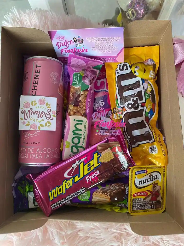 "Caja cartón Lazo tela Nucita Lata vino jp chenet Myms Barra de cereal Gomitas trululu Gol "