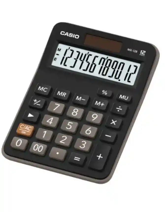 Calculadora casio 12 digitos color negro. Cálculos de porcentaje regular. Dos modos de alimentación (solar + pila) energía solar cuando hay suficiente luz, por pila cuando la luz es insuficiente. Pulsación simultánea de teclas las operaciones se almacenan en un búfer, así nada se pierde ni durante los ingresos de alta velocidad. Pantalla extra grande la pantalla más grande hace que los datos sean más fáciles de leer. Teclas plásticas diseñadas y preparadas para ser de uso fácil. Función de margen todas las capacidades de la función de margen de una máquina sumadora para cálculos simplificados con costo y porcentaje de utilidad.