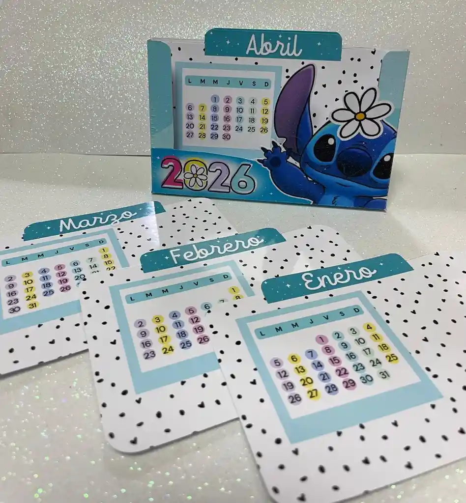 Calendario De Escritorio 2026 — Mini Con Diseño Stitch, 12 Tarjetas 💖