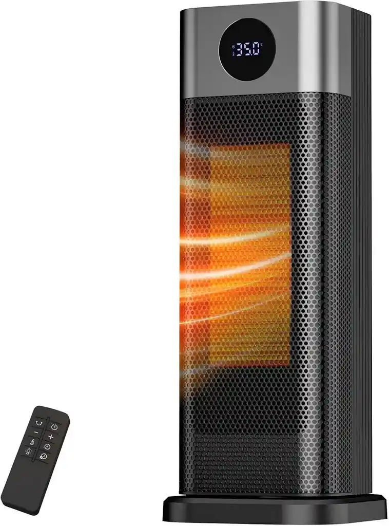 AL0000002173 CALEFACTOR ELÉCTRICO 1500W DE ALTA POTENCIA Calentador de espacio Sendowtek de 39.5 cm de altura (15.55 pulgadas), diseñado para generar aire caliente en segundos gracias a su sistema de calefacción eficiente. Ideal para habitaciones de hasta 15 m² (162 ft²), perfecto para uso en interiores. PROTECCIÓN DE SEGURIDAD MÚLTIPLE Incorpora sistema de protección antivuelco que activa enfriamiento y apagado automático con cuenta regresiva de 30 segundos. Cuenta con protección contra sobrecalentamiento y material retardante de llama V0 para mayor seguridad en el hogar u oficina. OSCILACIÓN DE 70° PARA MEJOR DISTRIBUCIÓN Función de oscilación amplia que distribuye el calor de manera uniforme en toda la habitación. Ideal para sala, dormitorio, oficina o espacios personales. CONTROL REMOTO Y PANEL SUPERIOR Incluye 5 botones de función en la parte superior y control remoto para ajustar fácilmente temperatura, temporizador y modos sin levantarte. TEMPORIZADOR 1 A 12 HORAS Programa el tiempo de funcionamiento y activa el modo sueño para apagar la luz LED durante la noche, garantizando descanso cómodo y sin molestias. TERMOSTATO AJUSTABLE Y AHORRO DE ENERGÍA Permite configurar temperatura entre 15°C y 35°C (59°F–95°F) para mantener calor constante y eficiente, ayudando a reducir consumo energético mientras mantiene el ambiente confortable. INCLUYE: 1 Calefactor eléctrico 1500W 1 Control remoto Manual de usuario