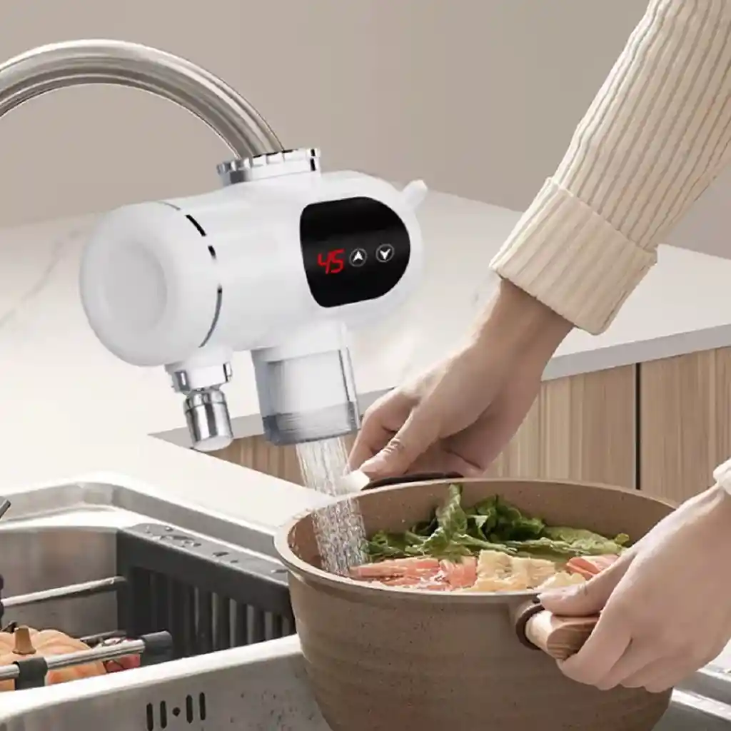 Características: 1. Ideal para uso en cocina, baño, ducha, etc. 2. Grifo de agua caliente con pantalla digital, fácil de instalar sin necesidad de desmontar la máquina. 3. Permite la descarga separada de agua fría y caliente, evitando la alternancia de temperaturas en un solo grifo. 4. Pantalla digital inteligente con luz de circulación de color para visualizar claramente la temperatura del agua en tiempo real. 5. Calienta el agua en tan solo 3 segundos. Parámetro: Nombre: Conector de grifo eléctrico Material de la tubería de calefacción: Acero inoxidable 304 de alta calidad Material del producto: ABS Temperatura: 35-50 Diámetro del cable de alimentación: 1,5 núcleo de cobre Voltaje nominal: 110v Presión del agua de funcionamiento: 0,04-MPA Potencia nominal: 3000W Grado de Impermeabilidad: IPX7 Visualización de temperatura: Sí Longitud del cable de alimentación: 1,2 m INCLUYE: 1 Pantalla digital calentador de agua eléctrico instantáneo de 3 segundos. 1 Paquete de accesorios para Instalación. 1 Manual de usuario.