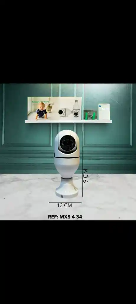 Cámara bombillo *💥 CÁMARA BOMBILLO INTELIGENTE ¡Vigilancia inteligente y discreta para el hogar o el bebé! Esta cámara IP tipo bombillo (Smart Camera) está diseñada para ofrecer monitoreo de alta definición con funcionalidad de detección de movimiento, ideal para vigilar bebés, mascotas o la seguridad general del hogar. *• Uso:* Vigilancia de seguridad para el hogar, monitoreo de bebés (baby monitor), o mascotas. *• Conectividad:* Se conecta a través de WiFi y es controlada por la aplicación V380 Pro Smart Camera. *• Diseño:* Estilo moderno de color blanco, con múltiples lentes infrarrojos para visión nocturna. *• Dimensiones:* 13 CM de ancho (base) x 9 CM de alto.