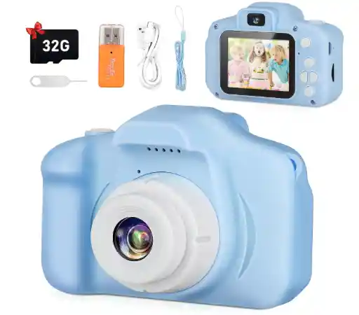 Cámara selfie mejorada para niños: mejorada con zoom digital de 8x + cámaras frontales y traseras duales, fácil de tomar selfies. Mejoró enormemente la definición de fotos en comparación con otras cámaras para niños en el mercado. Toma fotos continuamente durante 1-2 horas después de cargarse completamente. Simplemente abre la tecla del interruptor para disfrutar de la diversión de tomar fotos. Juguetes de cámara para niños con múltiples funciones: esta cámara para niños tiene 28 marcos de fotos de dibujos animados y 11 filtros. Tiene una cámara trasera y frontal con pantalla de protección ocular IPS de 2.0 pulgadas 1080P que puede evitar dañar la visión de tu hijo. Admite temporizador automático, flash, reproducción, grabación y juegos de rompecabezas. Más diversión: las cámaras de video digitales HD para niños soportan disparos continuos, disparos cronometrados, temporizador automático, grabación de video, ajuste de fecha, etc., lo que puede satisfacer diversas necesidades en diferentes situaciones. Materiales respetuosos con el medio ambiente, no tóxicos, mini cámara de video perfecta para niños. Batería recargable incorporada, esta cámara para niños pequeños es fácil de cargar a través de USB. Esta cámara de grabación infantil admite un máximo de tarjeta SD de 32 GB (incluye tarjeta de memoria de 32 GB).
