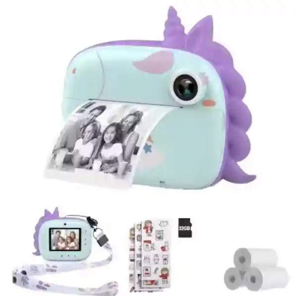 Cámara Instantánea sin tinta para Niños: La tecnología innovadora de impresión sin tinta permite a los niños imprimir fotos de forma instantánea sin necesidad de tóner. Solo con un simple clic, las imágenes se imprimen en un papel especial de 2.16 x 3.15 pulgadas, creando recuerdos tangibles al instante. ¡Perfecto para regalar una sonrisa o decorar su habitación! (El paquete incluye 3 rollos de papel para hasta 150 fotos). Fotos y Videos de Alta Definición (HD): Esta cámara para niños está equipada con lentes duales de 48 MP que permiten capturar fotos nítidas y videos en alta definición, además de una resolución de video ajustable de hasta 2.5K. Ideal para grabar momentos especiales y verlos con detalles excepcionales, incluso cuando no haya papel para imprimir. ¡También incluye un zoom digital de 10X para ampliar cualquier imagen! Funcionalidad Multifuncional: Además de tomar fotos y grabar videos, la cámara tiene 6 funciones principales, incluyendo reproducción de música, juegos, impresión en blanco y negro, y diversos filtros y marcos divertidos. Los niños pueden elegir entre 6 filtros de color y 20 marcos de fotos con personajes de dibujos animados para personalizar sus fotos, ¡desarrollando su imaginación y creatividad! Fácil de Usar y Divertida de Explorar: Diseñada para ser fácil de operar, incluso para los más pequeños, esta cámara permite a los niños disfrutar de su tiempo libre mientras aprenden a capturar momentos importantes de su vida. Además, con la opción de disparo continuo y disparo con temporizador, tus hijos podrán experimentar y jugar con diferentes tipos de fotografía y video. Seguridad y Privacidad: Para proteger la privacidad de tus hijos, esta cámara solo permite la transferencia de archivos a través de un cable USB. Así puedes estar seguro de que las fotos y videos capturados se mantienen privados y seguros. Se recomienda hacer copias de seguridad periódicas en una computadora para preservar todos los recuerdos. Perfecta para Niños: Esta cámara instantánea es ideal para niños de todas las edades. Su diseño compacto, ligero y resistente asegura que puedan disfrutarla sin preocupaciones, mientras desarrollan sus habilidades creativas y mejoran su coordinación. Especificaciones Técnicas: Lentes: Lentes duales frontales y traseros de 48 MP Resolución de Video: 1080P, ajustable hasta 2.5K Impresión Instantánea: Tecnología sin tinta (3 rollos de papel incluidos, hasta 150 fotos) Funciones: Fotografía a color, video HD, impresión en blanco y negro, música, juegos, filtros y marcos de fotos Zoom Digital: 10X Tarjeta de Memoria: 32GB (no incluida) Conexión: Transferencia USB Pantalla: Pantalla LCD de fácil visualización Peso: Ligera y fácil de transportar Lo que obtienes por tu compra: 1 x cámara instantánea 1 x cordón de transporte 3 x rollos de papel para impresión instantánea (hasta 150 fotos) 1 x cable USB para transferencia de archivos 1 x manual de usuario