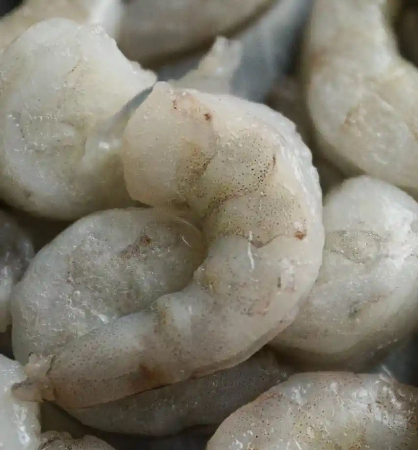 Camarón pelado y desvenado, IQF talla: 41/50 empacado en bolsas transparentes por 500 g.