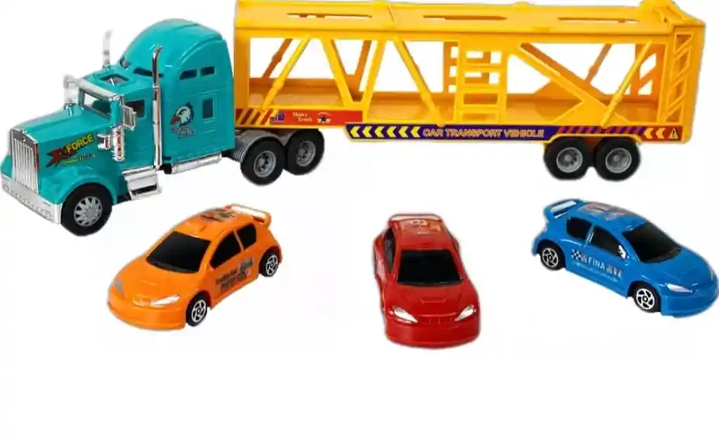 Camión Transportador de Carros con 3 Autos Incluidos ¡Diversión asegurada para los pequeños amantes de los autos! Este increíble camión transportador viene con 3 carros de carrera y una rampa funcional que permite subir y bajar los vehículos fácilmente. Su diseño realista y colores llamativos harán que los niños disfruten horas de juego imaginando grandes aventuras en carretera. Características: Medidas del camión: 50 x 12 x 5 cm Incluye 3 carros deportivos a escala Remolque con doble nivel para transportar autos Rampa trasera abatible para subir y descargar los carros Fabricado en material resistente y seguro Ideal para niños 3 años en adelante Perfecto para regalo, fomenta la imaginación, la creatividad y la coordinación motriz de los niños. ¡Lleva este espectacular camión portaautos y convierte la hora de juego en una verdadera aventura sobre ruedas