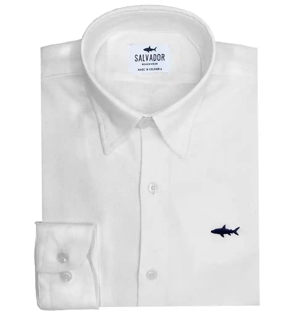 En Lino Manga Larga Regular Fit Tiburón Bordado. Cierre de Botones.