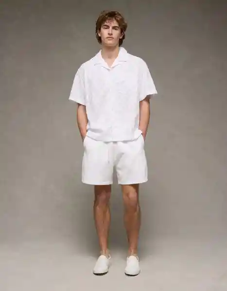 Tela de Algodón Texturizado Liviana Cuello de Campamento Diseñado Para Quedar Plano. Cierre Completo de Botones Delanteros Bolsillo de Parche en el Pecho