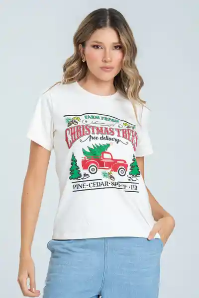 En Tejido de Punto Fondo Entero Con Estampado Localizado en Frente Cuello Redondo Manga Corta.