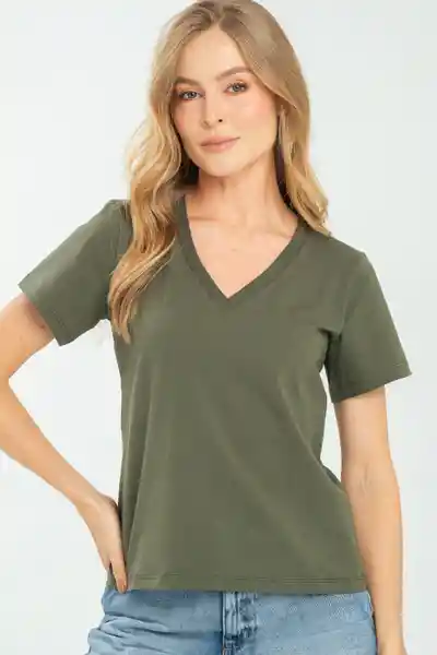 En Tejido de Punto Escote en V Manga Corta.