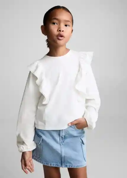 100% Algodón, Cierre de Botón en la Parte Posterior, Cuello Redondo, Detalle de Volantes, Diseño Recto, Manga Larga, Vuelta a Clase - 77016010_02.