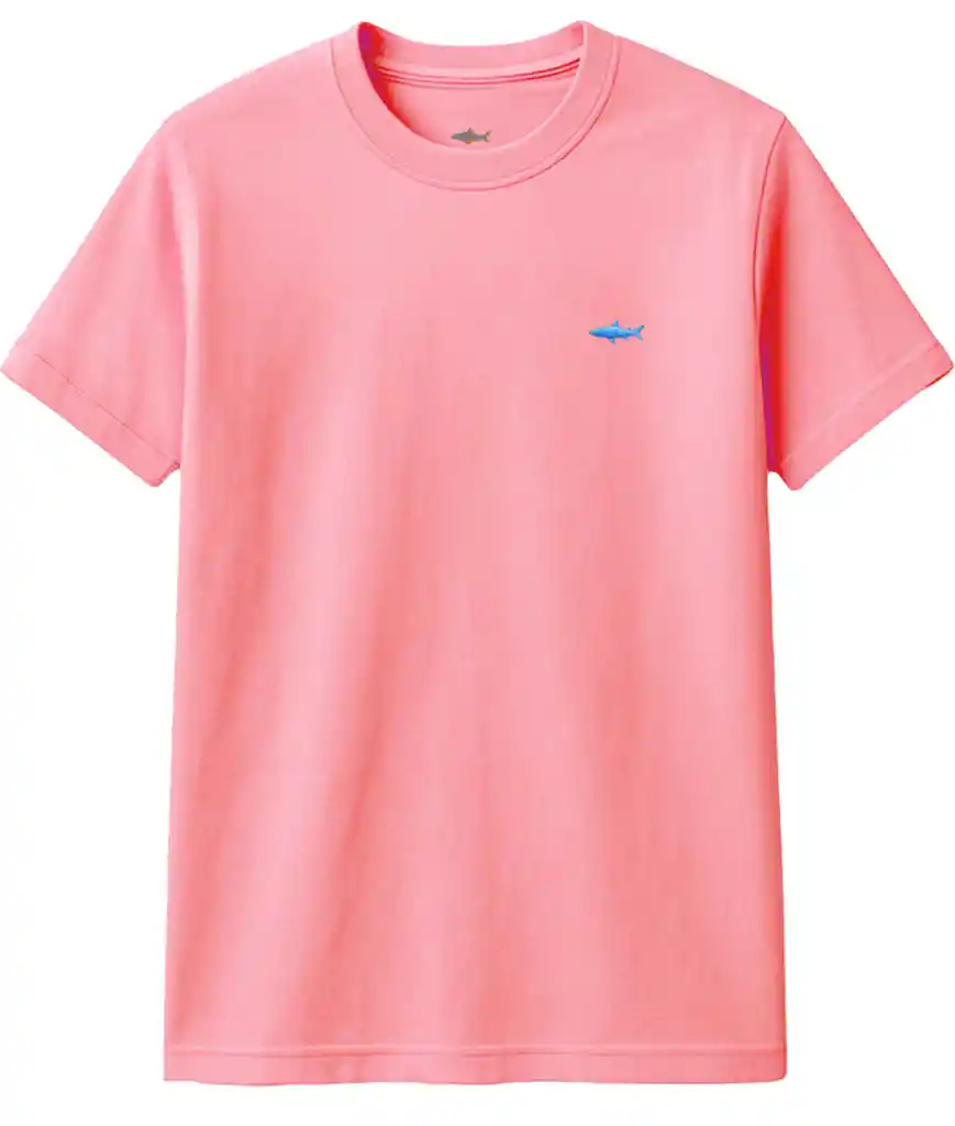 Cuello Redondo Con Tiburón Bordado. Manga Corta Adulto. 100% Algodón.