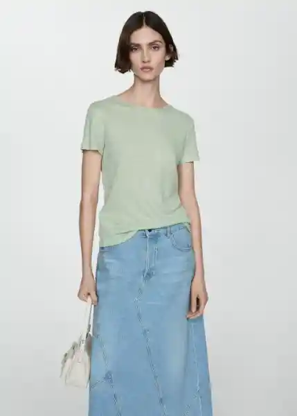 Camiseta Leno Verde Pastel Talla S Mujer Mango