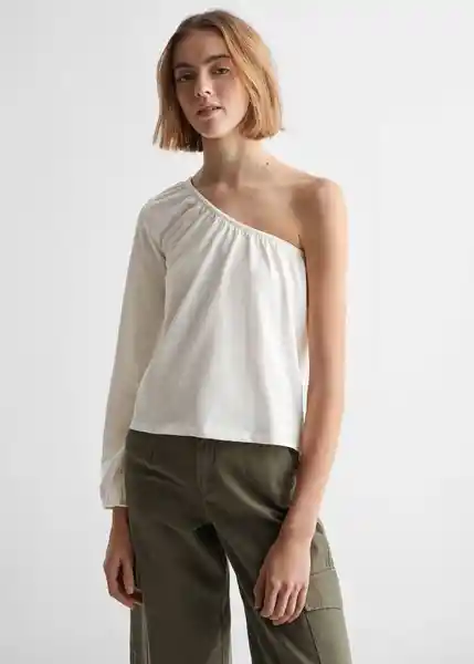 100% Algodón Detalles Elásticos Diseño Asimétrico Diseño Off-Shoulder la Modelo Mide 172 cm y Lleva Una Talla M Manga Abullonada Tejido Ligero Tejido Liso Una Manga - 47052509_02.