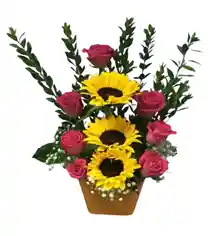 Canasta mediana Una encantadora canasta con una combinación de flores frescas que transmiten alegría y calidez, perfecta para cualquier celebración especial. Nota: La flor puede ser sustituida dependiendo de la disponibilidad de color y del producto. "Mensaje Personalizado" máximo de 30 caracteres (Dejar el mensaje en el chat, los comentarios no se previsualizan para la tienda, por lo que si se dejan allí no podrá ser incluido).
