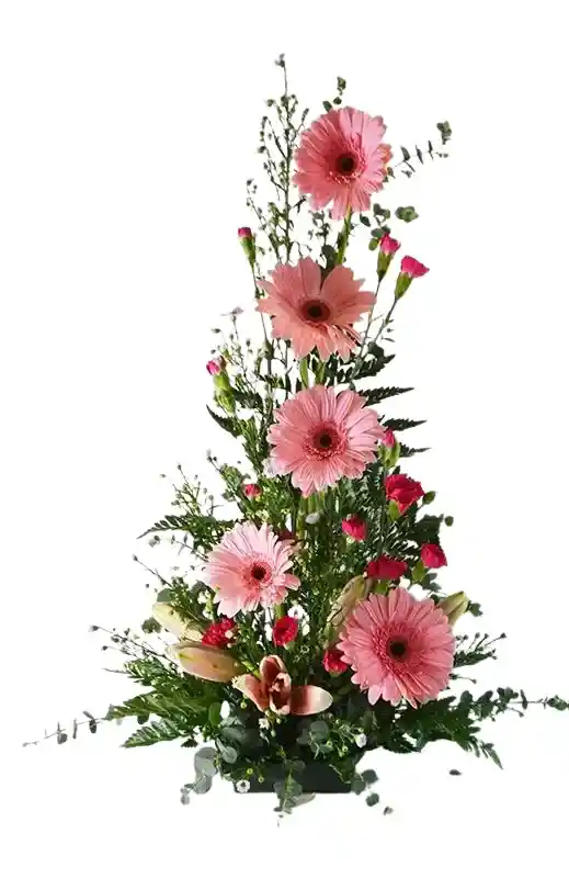 Canasta pequeña de gerberas Un adorable arreglo en canasta con 4-6 gerberas de colores vibrantes, ideal para alegrar el día de alguien especial. Nota: La flor puede ser sustituida dependiendo de la disponibilidad de color y del producto. "Mensaje Personalizado" máximo de 30 caracteres (Dejar el mensaje en el chat, los comentarios no se previsualizan para la tienda, por lo que si se dejan allí no podrá ser incluido).
