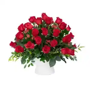 Canasta con aprox. 30 rosas con 20 varas de diferentes follajes como rusco. La flor puede ser sustituida dependiendo la disponibilidad de color y del producto “Mensaje Personalizado” máximo de 30 caracteres (Dejar el mensaje en el chat, los comentarios no se previsualizan para la tienda por lo que si se dejan allí no podrá ser incluido)