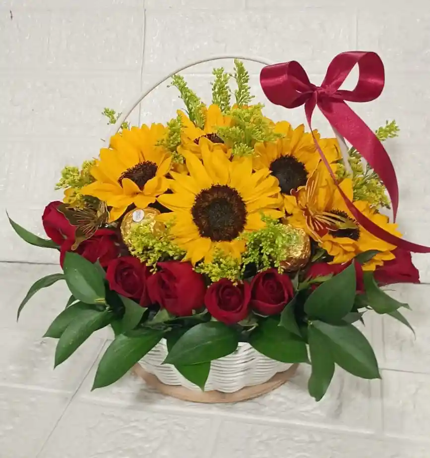 CANASTA ROSAS Y MINI GIRASOL