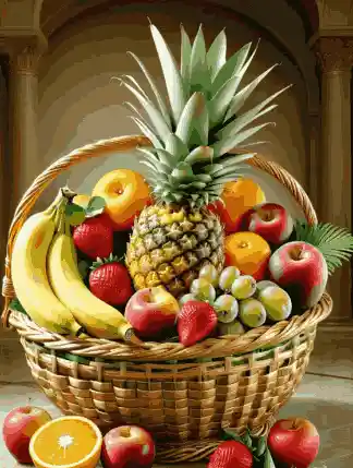 CONTENIDO: CANASTO FRUTALES MIX DE FRUTAS FRESAS,UVAS VERDE O MORADA, MANZANAS,DDURAZNOS, PIÑA ENTERA, NARANJA, MANDARINAS 1 CANASTA ENVUELTO EN PAPEL CELOFAN 1 TARJETA PERSONALIZADA