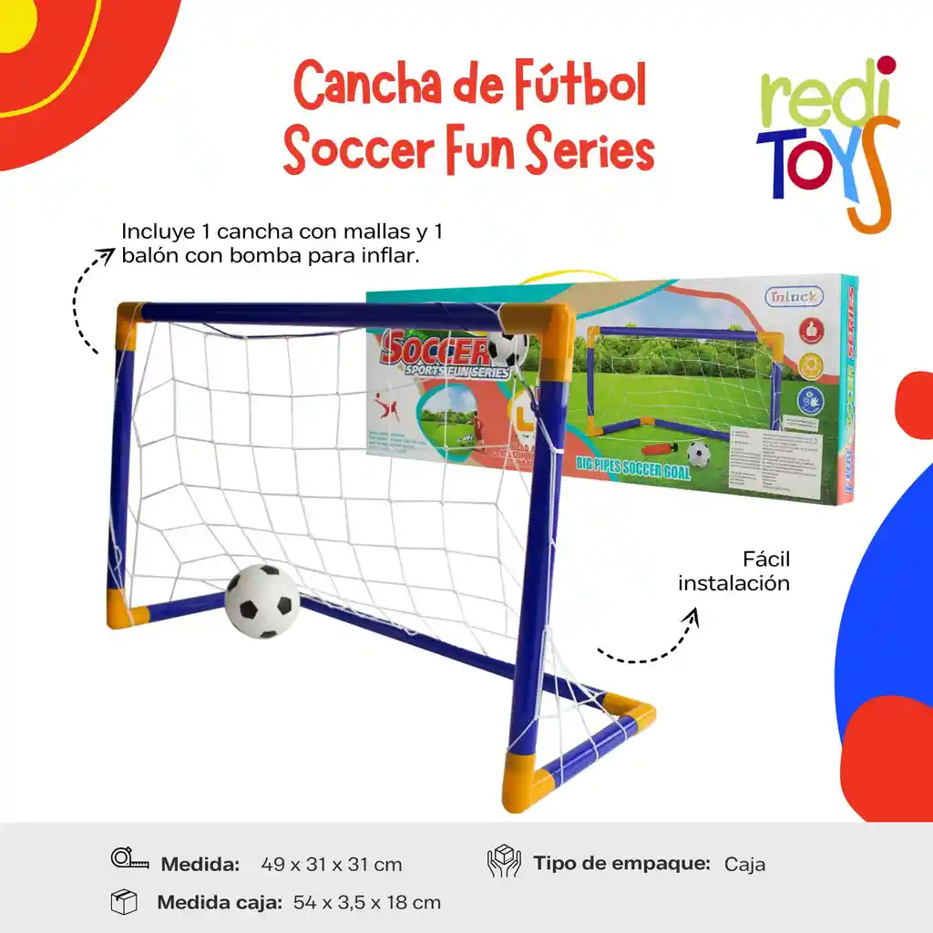 Fácil instalación. Incluye 1 cancha con mallas, balón con bomba para inflar, Ideal para juego indoor y outdoor. Los niños que juegan futbol controlan mejor su cuerpo y ganan en equilibrio, fuerza y buena postura. Practicar este deporte aumenta la densidad ósea en el fémur, Oxigena la sangre y mejora la visión periférica ya que los niños han de poner atención no sólo en lo que tienen delante sino en lo que ocurre a su alrededor