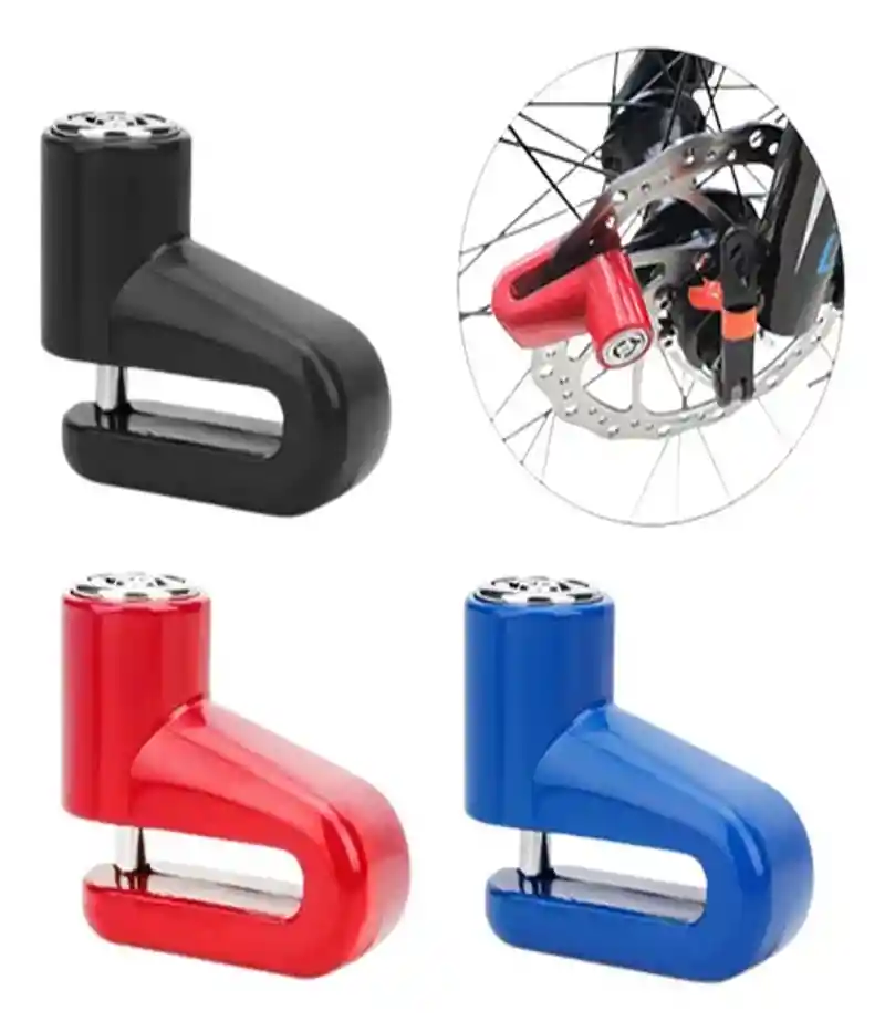 Cuerpo metálico compacto y resistente, diseñado para bloquear el disco de freno. Funciona con llave como un candado tradicional y es compatible con la mayoría de motos. Ideal para asegurar la moto en paradas rápidas.
