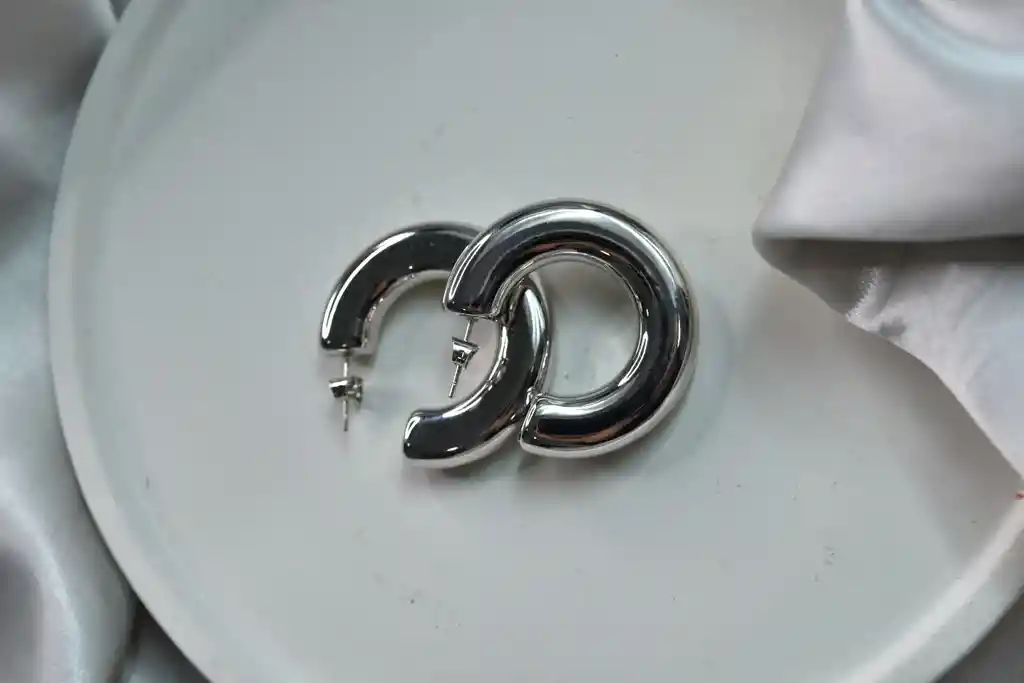 Candonga en rodio estilo chuncky de tamaño grande (3.5CM) en color plateado. Ideales para cualquier ocasión o para un regalo