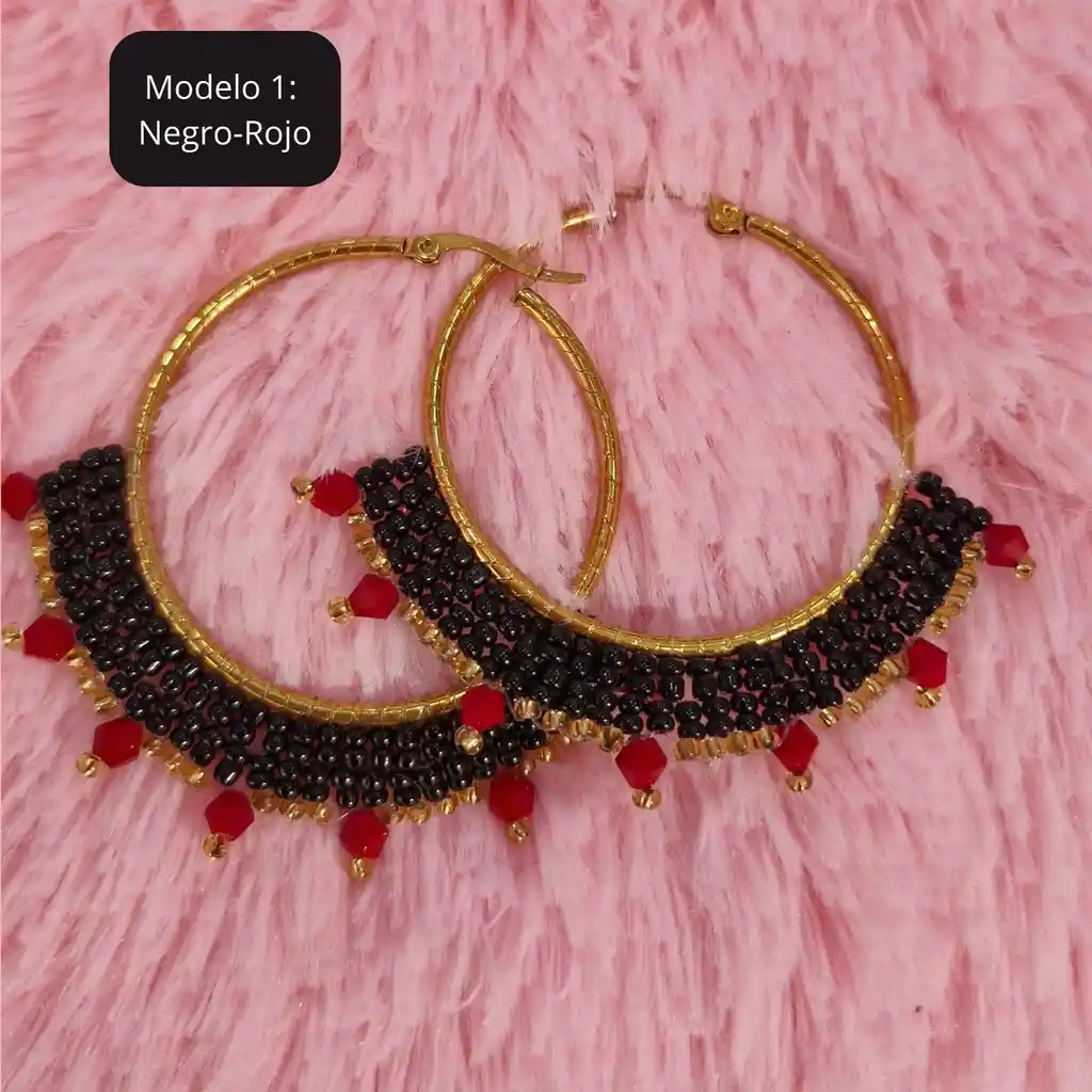 Candongas con mostacilla en acero dorado. Medida: Ancho 4.5 cm, alto 4.5 cm Solo contamos con 1 par de cada modelo