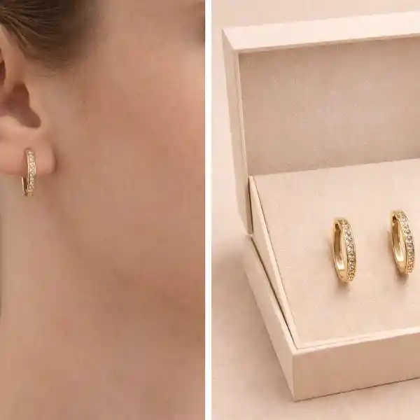 CANDONGAS EN CIRCON BLANCO ORO LAMINADO el oro laminado ofrece una excelente alternativa para quienes buscan la las características del oro sólido sin el alto costo asociado. Su resistencia al desgaste, el agua y el calor lo convierten en una opción ideal para joyas de uso diario que van a mantener su brillo a lo largo del tiempo