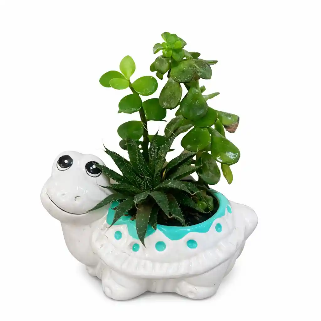 Matera en forma de Caracol con suculenta de su preferencia, ideal para decorar espacios pequeños y oficinas.
