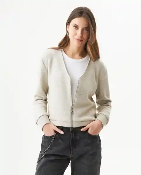 Abierto Para Mujer Silueta Recta Con Fit Relajado. Escote en V Que Estiliza y Permite Lucir Prendas Debajo Manga Larga Con Puños Tejidos Que Aportan Ajuste y Calidez Perilla Con Cierre Separable Que Facilita Colocación Rápida. Elaborado en Tela Suave Con Efecto Tejido e Hilos de Lurex Que Proporcionan Sutil Brillo Especial. Ean- 789G003Cru141106 Plu- 1111133184839.
