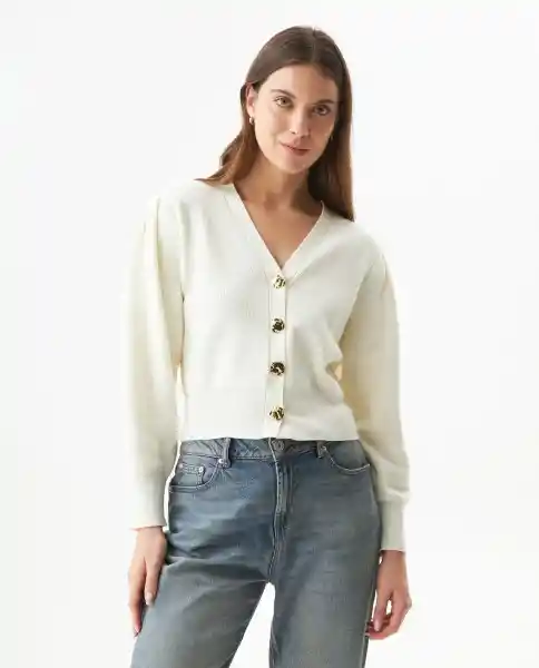 Tejido Para Mujer Oversize Fit Cuello en V Profundo. Silueta Bomber Con Detalles Femeninos Mangas Bombachas Que Combinan Diseño Actual Con Toque Sofisticado Perilla Con Botones Dorados. Elaborado en Tejido Mini Canal de Galga Media Que Aporta Textura y Estructura Ligera. Cortes Precisos y Acabados Cuidados Para Versatilidad. Placa Metálica de Chevignon en Parte Superior de la Espalda. Ean- 799G000Cru110103 Plu- 1111133158854.