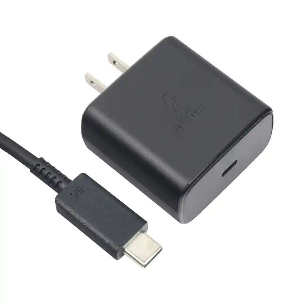 Cargador homologado ideal para dispositivos Android. Potencia de 45W Entrada universal de 110-240V Incluye cable USB Tipo C a Tipo C Carga rápida y eficiente Diseño compacto y portátil