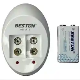 1 x Cargador Beston BST-C818 250mah 1 x Batería Pila 9v Cuadrada 800mah CARACTERÍSTICAS: – Este cargador puede cargar 1 o 2 baterías de 9v Ni-MH, Ni-Cd o baterías recargables al mismo tiempo. – El LED muestra el proceso de cargado. – Protección de sobre cargas con el temporizador (3.5 horas). – Carcasa de materiales de polímero de alta duración. – Enchufe plegable, lindo y portátil. – Uso universal: 100-240V AC. PRECAUCIÓN El funcionamiento incorrecto puede causar descargas eléctricas. Manténgase fuera del alcance de los niños. Los niños deben utilizarlo bajo la supervisión de un adulto. No puede ser desmontado ni ensamblado por una persona no calificada. Utilícelo a una temperatura entre 0 °C y 40 °C. No lo utilice bajo el sol o la lluvia. ESPECIFICACIONES Entrada: AC 100-240V 50/60Hz 10W(Max) Salida: DC 9V x 100mA