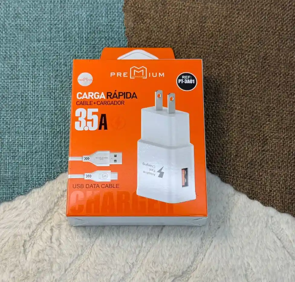 CABLE + CARGADOR TIPO USB-C COLOR BLANCO