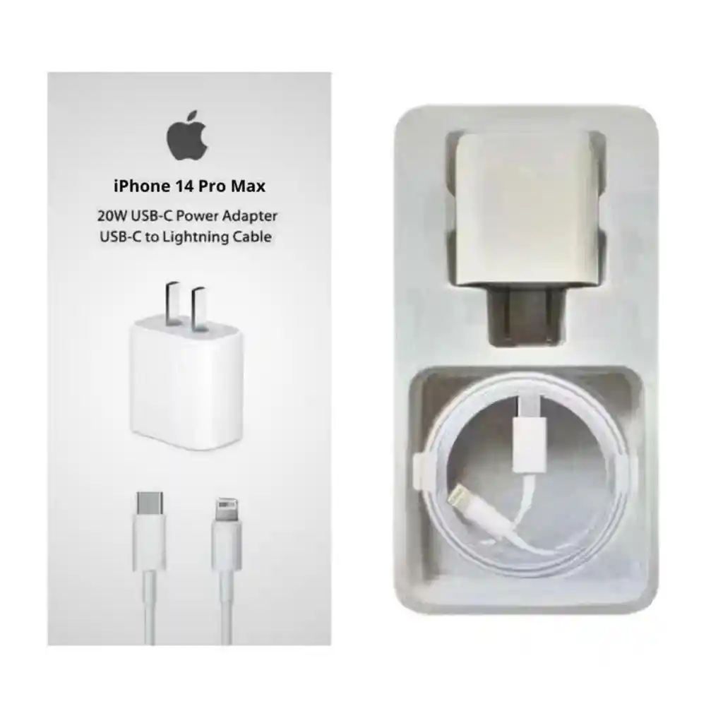 Cargador Completo Original IPhone USB-C 20w (Adaptador de corriente + cable Tipo C a Lightning 1 mtr)