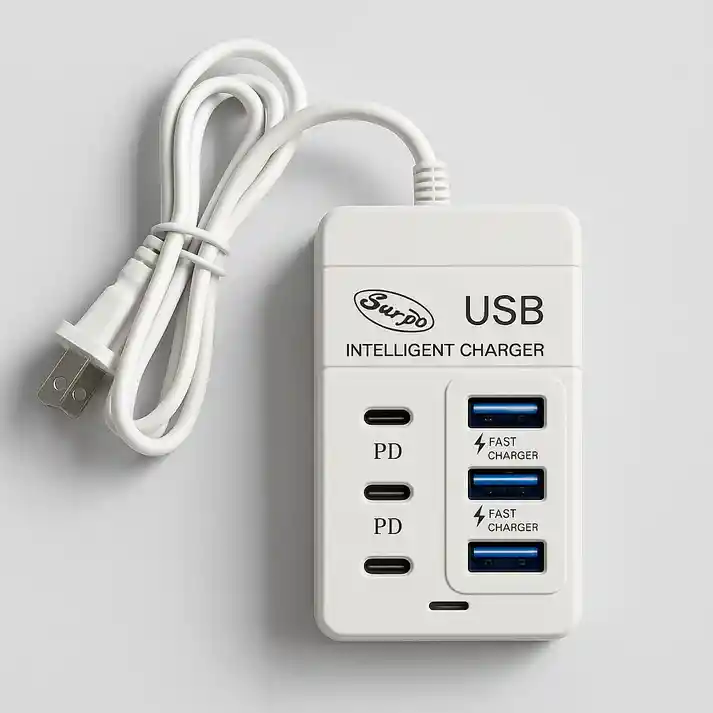 Carga multipuerto: incluye 3 puertos USB y 3 puerto usb C que permiten cargar varios dispositivos al mismo tiempo, ideal para familias, oficina o rutinas ajetreadas. Diseño enchufable: práctico y fácil de usar. Su formato plug-in elimina la necesidad de adaptadores adicionales, perfecto para viajes. Alta compatibilidad: gracias a su salida universal de 3A, es compatible con teléfonos, tablets, audífonos, smartwatches y más. Compacto y portátil: su tamaño reducido facilita llevarlo en mochilas y maletas sin ocupar espacio. Carga rápida 35W: tecnología de carga rápida que permite energizar tus dispositivos en menor tiempo y con mayor eficiencia. ¿Qué incluye la compra? Un articulo correspondiente al titulo hecho en abs y un cable de carga Garantía: 60 días por defecto de fábrica.