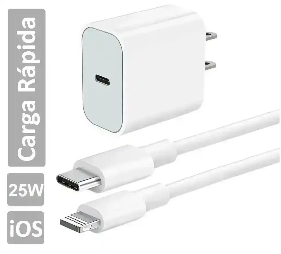 Cargador IPhone 25watts Carga Rápida doble puerto usb Tipo C a lightning, ● Marca: Genérico ● Incluye: Cargador de iphone + cable de datos tipo c a lightning )● Potencia Max carga iphone : 25 Watts ● Compatible con celulares ( iPhone , iPad o iPod) iOS ● INPUT: AC100-240V, 50-60Hz 1A USB-PD | TYPE-AOUTPOT :5V -5A 9V-3.33A| TOTAL POWER: 60W (MAX) ● Cargador de iphone Compatible Cargador Iphone con cargador para iphone cargadores de iphone: iPhone Models iPhone 14 Pro iPhone 14 Pro Max iPhone 14 iPhone 14 Plus iPhone 13 Pro iPhone 13 Pro Max iPhone 13 mini iPhone 13 iPhone SE (3rd generation) iPhone 12 Pro iPhone 12 Pro Max iPhone 12 mini iPhone 12 iPhone 11 Pro iPhone 11 Pro Max iPhone 11 iPhone SE (2nd generation) iPhone XS iPhone XS Max iPhone XR iPhone X iPhone 8 iPhone 8 Plus iPad Models iPad Pro 12.9-inch (5th generation) iPad Pro 12.9-inch (4th generation) iPad Pro 12.9-inch (3rd generation) iPad Pro 12.9-inch (2nd generation) iPad Pro 12.9-inch (1st generation) iPad Pro 11-inch (3rd generation) iPad Pro 11-inch (2nd generation) iPad Pro 11-inch (1st generation) iPad Pro 10.5-inch iPad Air (5th generation) iPad Air (4th generation) iPad Air (3rd generation) iPad (9th generation) iPad (8th generation) iPad (7th generation) iPad mini (6th generation) iPad mini (5th generation) Apple Watch Models Apple Watch Series 8 Apple Watch SE Apple Watch Ultra Apple Watch Series 7 Apple Watch Series 6 Apple Watch Series 5 Apple Watch Series 4 Apple Watch Series 3 Apple Watch Series 2 Apple Watch Series 1 Apple Watch 1st generation AirPods Models AirPods Pro (2nd generation) AirPods Pro (1st generation) AirPods (3rd generation) with MagSafe Charging Case AirPods (3rd generation) with Lightning Charging Case AirPods with Wireless Charging Case (2nd generation) AirPods (2nd generation) AirPods Max AirPods (1st generation) Wireless Charging Case for AirPods
