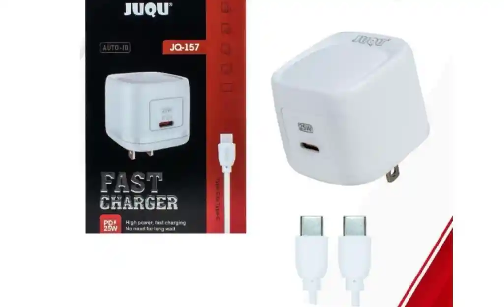 cargador JUQU de 25W es un cargador de pared con puerto USB-C, diseñado para ofrecer carga rápida (Super Fast Charging) a dispositivos compatibles, incluyendo iPhone, Samsung y otros, con soporte para protocolos como Power Delivery (PD) y Quick Charge, entregando hasta 25W de potencia para cargar eficientemente smartphones y tabletas, ideal para uso diario gracias a su diseño compacto y versátil. Características Principales: Potencia: 25W (Vatios) para una carga rápida. Tecnología: Compatible con Power Delivery (PD) y carga súper rápida, adaptándose a la potencia que necesita el dispositivo. Conexión: Puerto USB-C en el cubo y a menudo incluye un cable USB-C a USB-C. Compatibilidad: Amplia compatibilidad con marcas como Samsung, Huawei, Motorola, Redmi, etc.. Diseño: Compacto, fácil de transportar y ligero. Voltaje/Corriente: Varía según el dispositivo, pero puede ofrecer salidas como 5V/3A (15W) o más para carga rápida.