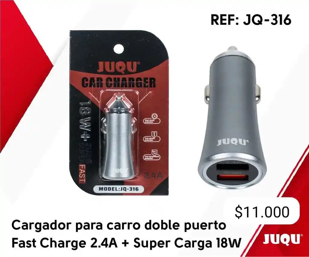 Cargador Para Carro Juqu 2 Puertos Jq-316