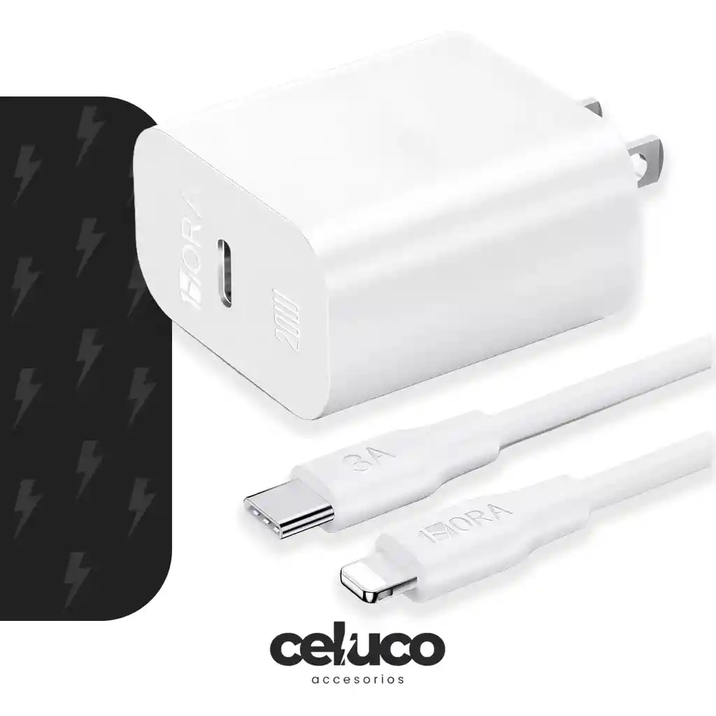 Cargador 1HORA GaN 20W con cable Tipo C a Lightning Disfruta de una carga veloz y segura con el 1HORA GaN 20W, compatible con todos los dispositivos Apple que usan conector Lightning. Su tecnología GaN ofrece mayor eficiencia energética y menor calentamiento. Incluye cable Tipo C a Lightning, perfecto para iPhone, iPad y AirPods. Carga rápida certificada (PD 20W) Cable resistente y de alta velocidad Diseño compacto y moderno Protección inteligente para tus dispositivos Apple