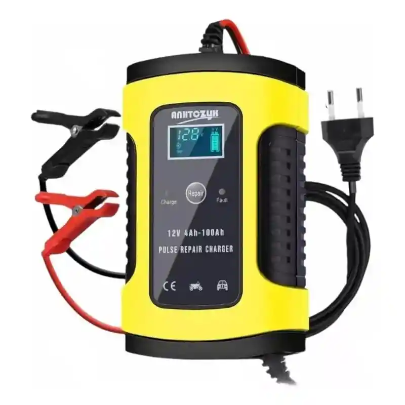 🔋 Cargador de Batería 12V Cargador diseñado para baterías de 12 voltios, ideal para carros, motos y otros vehículos. Cuenta con sistema automático de carga que detecta el estado de la batería y ajusta la corriente para una carga eficiente y segura. ✅ Características: Voltaje: 12V Tipo: Cargador inteligente automático Pantalla digital LED: Muestra el estado de carga, voltaje y modo de trabajo Función de reparación por pulsos: Ayuda a recuperar baterías sulfatadas o descargadas Protecciones múltiples: Contra sobrecarga Contra cortocircuito Protección por polaridad inversa Protección por sobrecalentamiento Detección automática de voltaje y temperatura Pinzas resistentes: Fácil y segura conexión a la batería Uso sencillo: Conecta y carga automáticamente Diseño compacto y portátil 🚗 Ideal para: Baterías de carros y motos Mantenimiento de baterías Uso doméstico o taller ✨ Una solución práctica, segura y eficiente para mantener tus baterías siempre listas.
