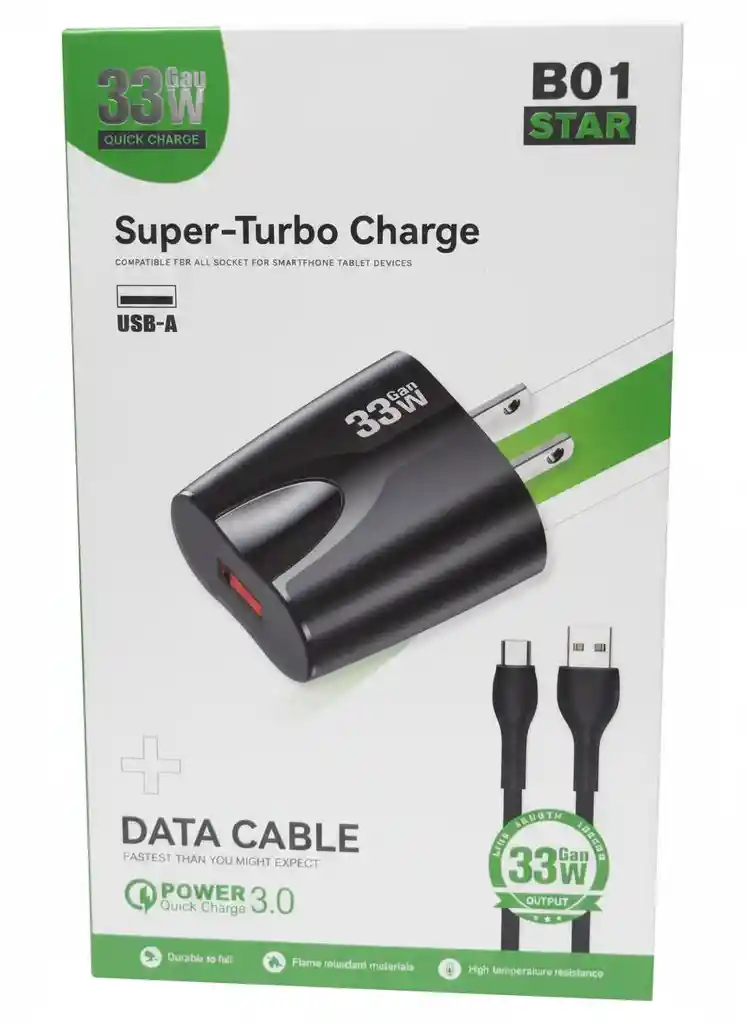 Cargador TIPO C 3 AMPERIOS 33W B01 STAR - CARGA RAPIDA, NEGRO