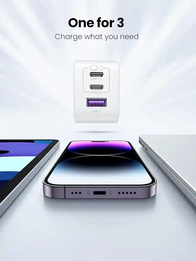 Cargador Ugreen 65W PD USB tipo C y USB-A Carga rápida con QC 4,0, 3,0, para iPhone, IPad, Android y PC portátil Este cargador GAN es capaz de cargar casi todos los tipos de dispositivos digitales, y es compatible con casi todos los protocolos de carga rápida, (PD 3.0/2.0, QC 4.0/3.0/2.0, AFC, FCP, SCP, SFCP) se asegura de que sus dispositivos se carguen con una eficiencia tres veces mayor. Un cargador para su trabajo y su vida cotidiana. El más ligero y pequeño cargador rápido de GaN Equipado con 4 puertos, el cargador rápido de 65W GaN PD tiene un diseño ergonómico y ahorra hasta un 50% de espacio para ti. Sólo 128g, la mitad del peso de un rollo de papel higiénico 2 USB-C y 1 puerto USB Con la popularidad, el uso de alta frecuencia, más y más dispositivos vienen con carga de tipo C, adhiriéndose al concepto de diseño de Todo en Uno, ponemos 2 puertos USB-C (Tipo C) y USB-A en este pequeño cargador de cubo. Cargar inteligentemente con eficiencia Carga al 50% en 30 minutos para el iPhone X, el cargador UGREEN 65W GaN PD Charger ofrece una carga rápida para el iPhone 12, iPhone 12 Pro, iPhone 12 Mini, iPad Air 2020, iPad Pro 2020, Nintendo Switch y AirPods al mismo tiempo. La gestión inteligente de la energía proporciona una potencia de carga óptima para cargar rápidamente los dispositivos. Diseñado para los fans de Apple Sólo un cargador para todos los i-devices para los fans de Apple; El cargador de 65W es capaz de manejar los dispositivos como el MacBook Air 2020, iPad Pro, iPhone 11 Pro, AirPods Pro y Apple Watch etc. Especificaciones: Modelo: CD244 Material: Carcasa ignífuga Poder: 65 W m De entrada: 100-240V ~ 50/60Hz 1.8A.áx. Puertos: 2 x USB C, 1 x USB A USB-C1/C2:5V/3A 9V/3A 12V/3A... 15V/3A 20V/3.25A 65W Max USB C1 + USB C2 salida: + PD20W PD45W (65W) USB C1 + USB de salida: + QC18W PD45W (65W) USB C2 + USB de salida: 5V1.7A + 5V1.7A USB C1 + USB C2 + USB de salida: PD45W + 5V1.7A + 5V1.7A Tamaño del producto: 40mm * 31mm * 66,8mm Protocolos de carga rápida: PPS/PD3.0/PD2.0, QC4+/QC4.0/Qc3.0/QC2.0, AFC, FCP/sCP/sFCP PE2.0/PE1.1, BC1.2 Enchufe: americano Estructura del PCBA: GaN Contenido del paquete 1 x GaN 3 Puertos Cargador de pared rápido FACTURACIÓN Emitimos factura legal electrónica exenta de IVA, solicítala sin costo adicional vía chat una vez recibido el producto a satisfacción. Si requieres factura electrónica IVA incluido el valor del impuesto facturado será adicional.