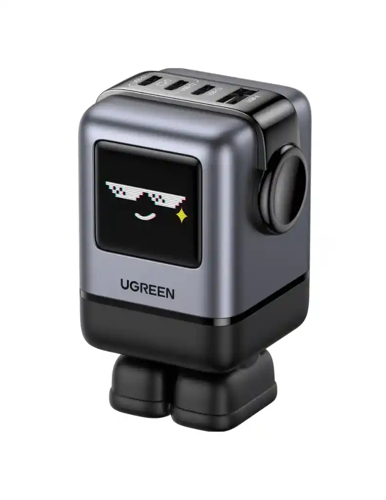 "Diseño de robot Groovy: UGREEN cargador de la serie creativa, la forma de robot, pantalla TFT mejorado de LED, por lo que muestra expresiones más interesantes de acuerdo a diferentes estados de carga. Sus pies son magnéticos que se pueden pegar a los ordenadores portátiles sin perderlo Carga rápida de 100W: Este cargador GaN carga tu MacBook Pro de 16 pulgadas de 0 a 43% en solo 30 minutos a través de un único puerto USB-C y carga tu iPhone 15 Pro de 0 a 60% en solo 30 minutos a través de un único puerto USB-C Carga 4 dispositivos a la vez: 3 puertos USB C y 1 puerto USB A proporcionan hasta 100 W a teléfonos, tabletas, portátiles y mucho más, todo al mismo tiempo de carga rápida 8 niveles de protección de seguridad: El cargador USB C de 100W está equipado con chip PWM y chip de rectificación síncrona, la fuente de alimentación funciona de manera eficiente, y también tiene protecciones de sobretensión, sobrecorriente, sobrecarga, cortocircuito, sobretemperatura y otras protecciones Amplia Compatibilidad: Este bloque cargador robótico es compatible con iPhone Serie 8-16, Galaxy Serie S10-S24, Pixel 8/7/6, MacBook Air/Pro, iPad Pro/Air/mini, Watch 8/7, HomePod, AirPods Pro, y más."